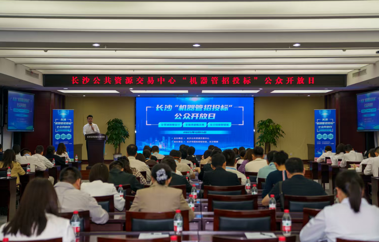 大屏幕实时滚动项目信息与开标监控画面,交易数据看板动态更新交易数据……10月15日,长沙公共资源交易中心举办“机器管招投标”公众开放日活动,近60名招标人、投标人、招标代理等交易主体代表走进交易中心,“零距离”观摩“机器管招投标”项目全流程电子化交易场景,亲身感受招投标向“数智规则”转变的改革创新。
